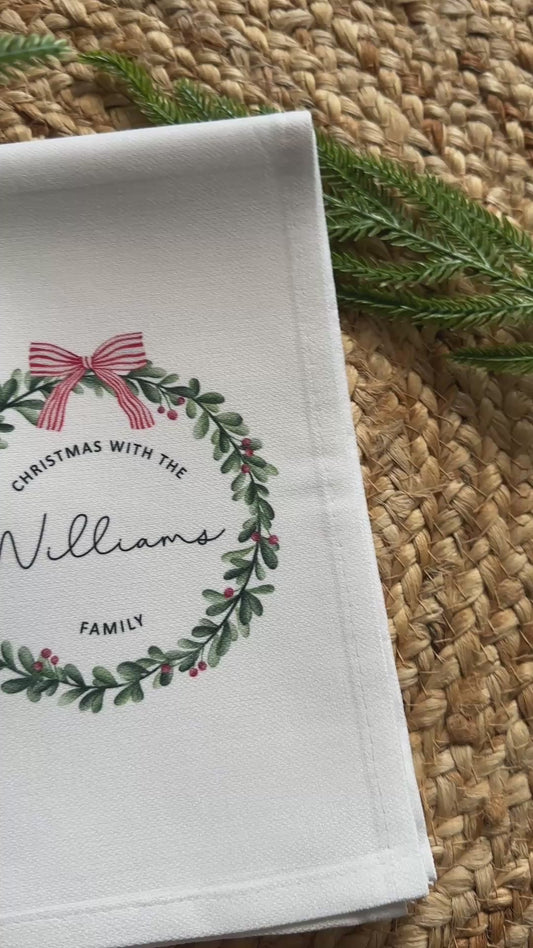 Personalised Christmas Tea Towel; Christmas with the Family