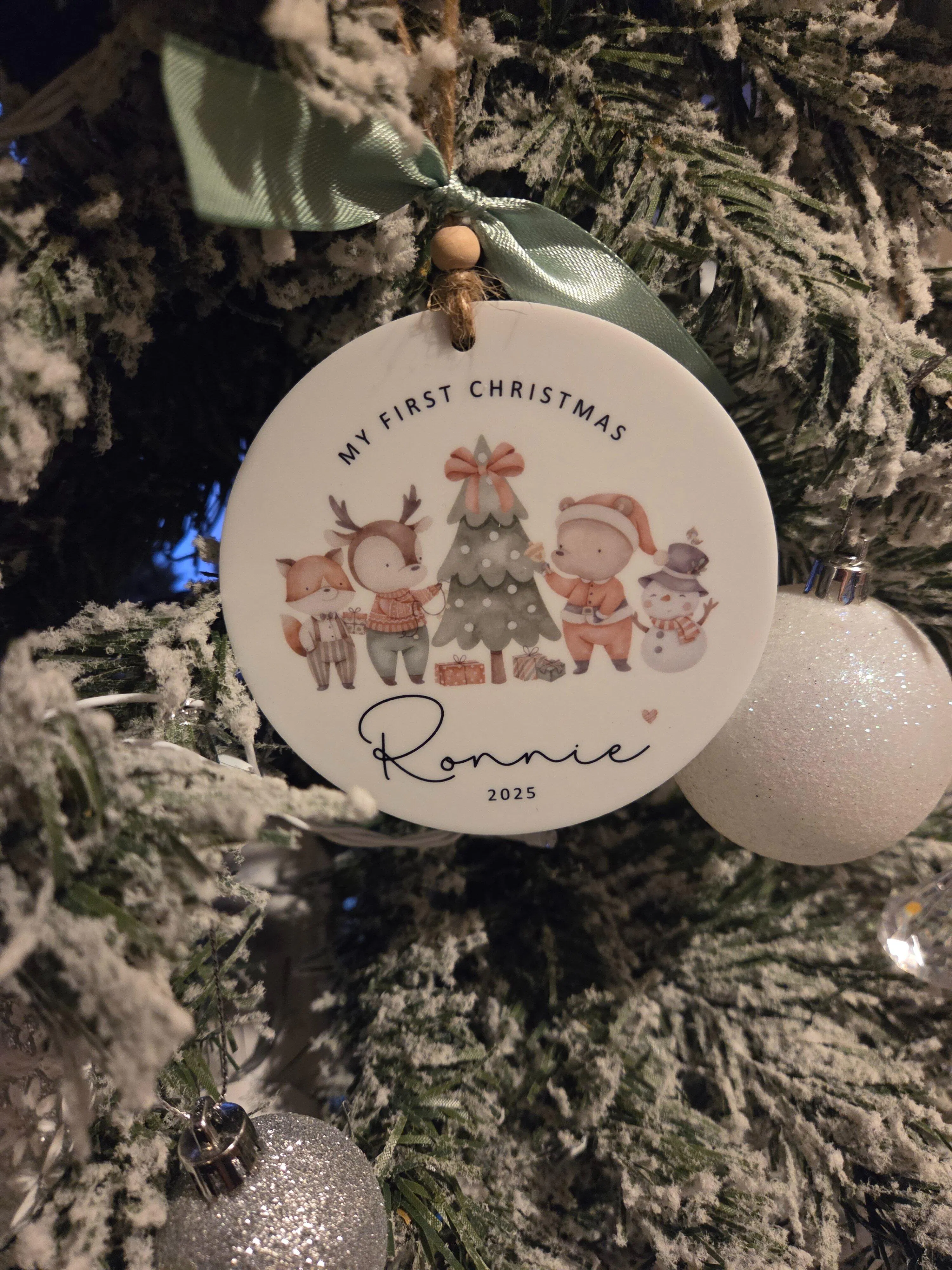 Personalised First Christmas Decoration - Woodland Characters