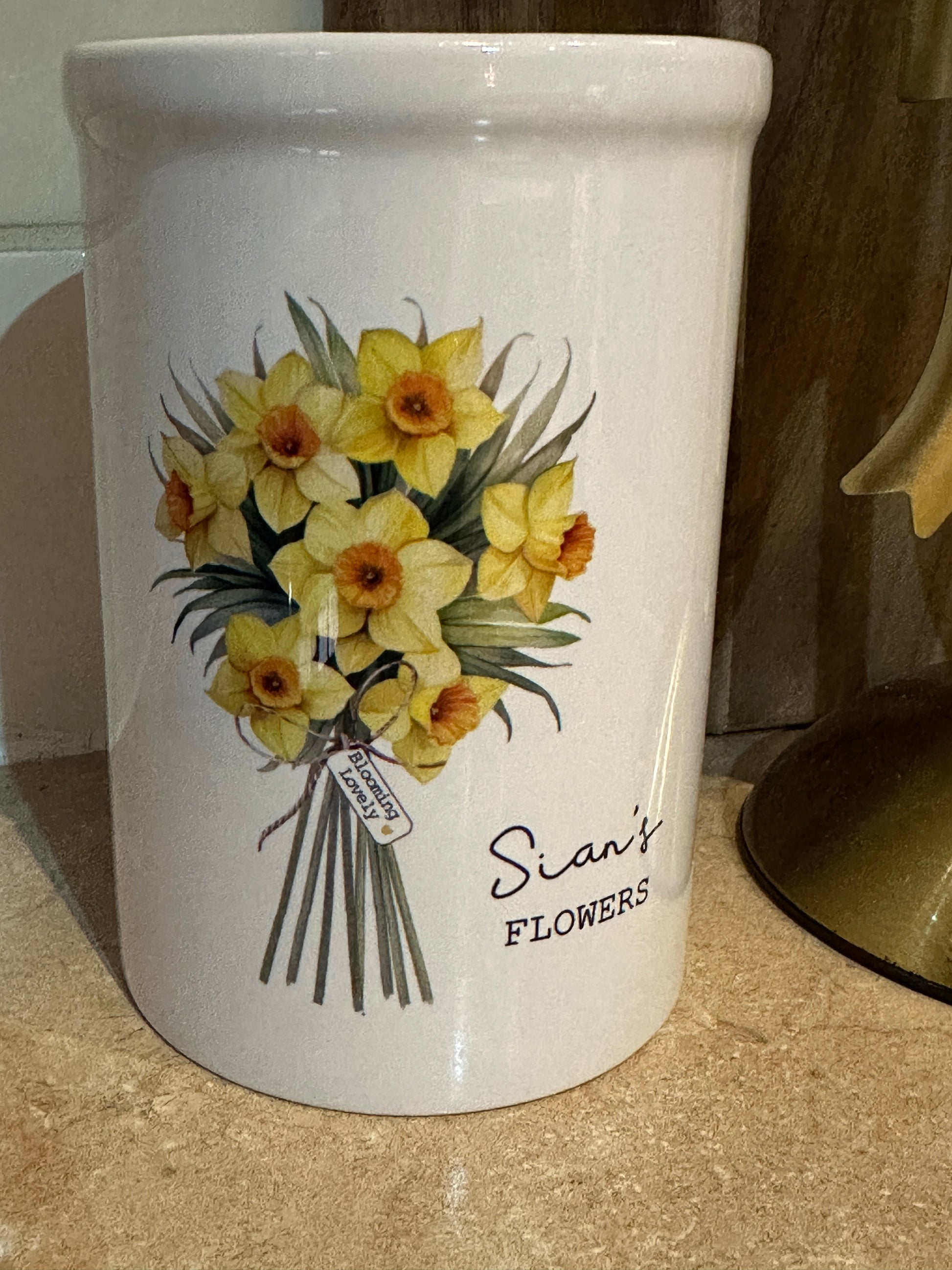Personalised Mothers Day Vase with Daffodil Design and Optional Card